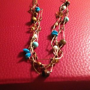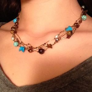 Very pretty short necklace with rock like beads and brown round beads, nothing over the top but you can add this to a plain color shirt to add an extra oomf