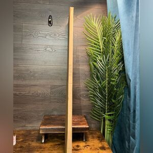 Sleek silver metal shower curtain rod set. Includes mounting hardware.