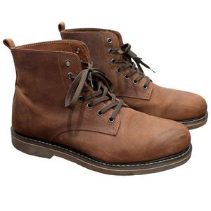 Men's leather boots in brown. Size 11. Designed in Ontario, CA.