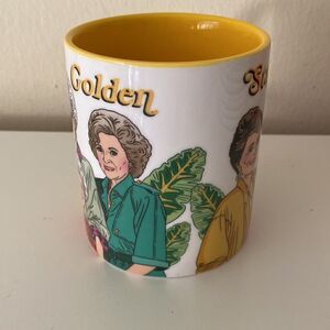 Ceramic mug in good condition, no chips or cracks. Yellow interior.