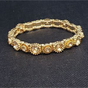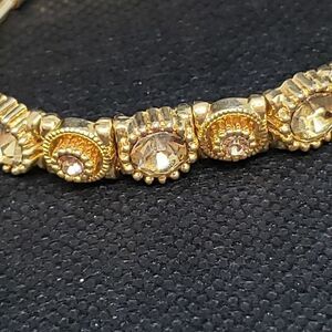 Beads of golden detailed metal with sparkly yellowish tone rhinestones.