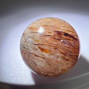 A golden rutilated quartz marble sphere glistens with golden threads, each rutile inclusion capturing light in a mesmerizing display. Metaphysically, it is said to amplify energy, enhance intuition, and promote spiritual growth, offering clarity and a deeper connection to one's inner self.
