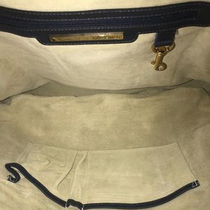 • The bag for sale is navy blue leather (product shot shows white leather.)