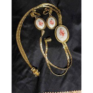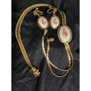 Goldette Semi Parure Enamel Roses