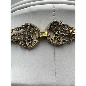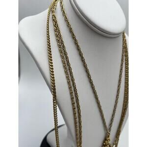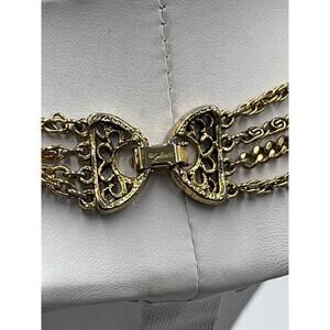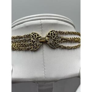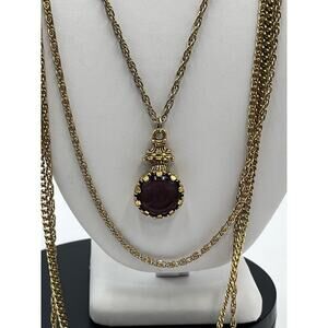 Goldette Vintage Purple Glass Intaglio Cameo Silhouette 3 Strand Chain Necklace