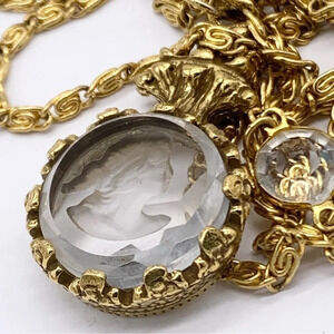Goldette Vintage Triple Strand Intaglio Cameo Gold Necklace