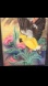Vintage Artist Signed Acrylic Painting. Goldfinch Bird in Flight over Pink Thistle Flower. 8' x 10' Canvas in Black Wooden Frame with Ornate Embellishments on Corners. See photos for details and inquire with any questions.