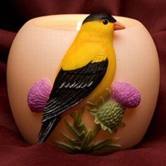 Botanically inspired, hand painted flowers of light votive lights are cast in bonded marble, producing a warm, glowing light.