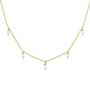 14K plated gold chain Choker Necklace features faux pearls on a beautiful chain link. 15" with a 3" extender, this dainty womens necklace is the perfect layering piece.