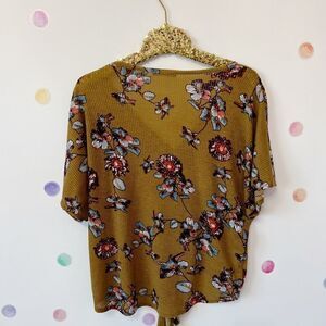 Thin, waffle material Front tie Faux buttons Pit to pit 40 inches Boutique brand Gold color