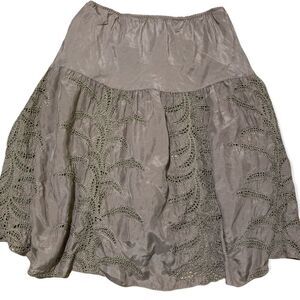 Gold hawk taupe silk skirt with two under layers-Small