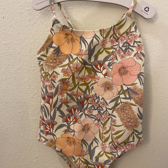 Melbourne-based label Goldie + Ace bathing suit with native Australian flora print in size 12-18m. In like-new used condition.