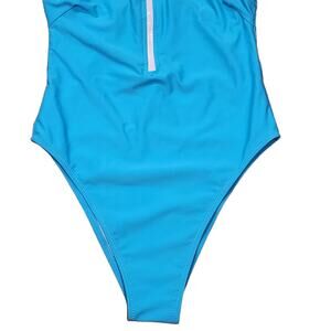 Discover the perfect blend of style and sustainability with the Goldie Blue Racerback One Piece Swimsuit. This vibrant blue swimsuit features a sleek racerback design and a flattering bikini cut that accentuates your natural silhouette. The front zipper adds a touch of sporty elegance, making it both functional and fashionable. Imagine yourself poolside, feeling confident and chic in a swimsuit that’s new with tags, ensuring top-notch quality. With limited stock available, don’t miss your chance to snag this eco-friendly and budget-friendly piece.