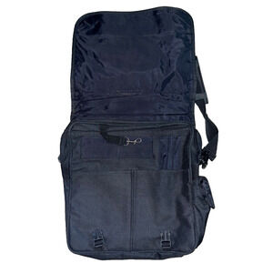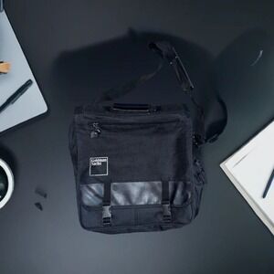 This is a stylish and versatile messenger bag from Goldman Sachs, perfect for travel, business, or casual use. It features a solid black color with a combination of polyester and cotton material and a durable canvas lining. The bag comes with a shoulder strap handle and buckle/zip closure for easy and secure access. With inner dividers and adjustable straps, you can easily organize your belongings and customize your carrying experience. This unisex bag is suitable for medium-sized items and is designed to be a long-lasting accessory. Whether you're a student, outdoorsman, or sports enthusiast, this messenger bag from Goldman Sachs is a must-have. Very Rare - New never used canvas case. Has an adjustable/detachable shoulder strap, cell phone pocket, 2 outer pockets - one with zipper, 1 large - 2 medium inside pockets, 3 pen pockets & 4 business card pockets.