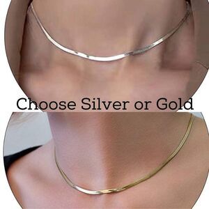 Superb quality 14k warm gold or silver plated 3mm flat herringbone/snake necklace.