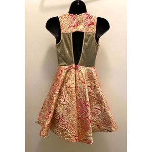 Gold/pink metallic sheer mesh trim dress S No tag found Chest 17" across Waist 13"