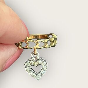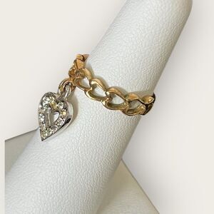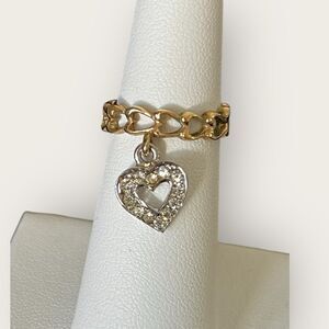 Gold plated ring with dangling heart size 5, chain link design
