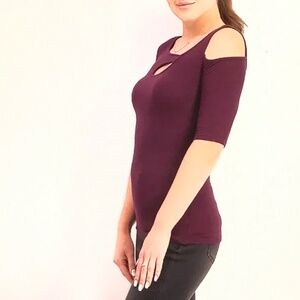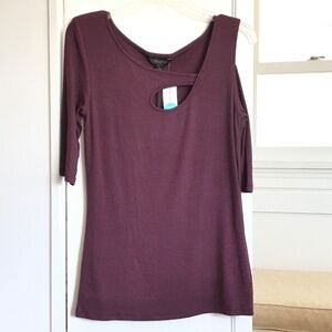 Goldray Garima Asymmetric Cold Shoulder Top Burgundy NWT Women’s Size Large