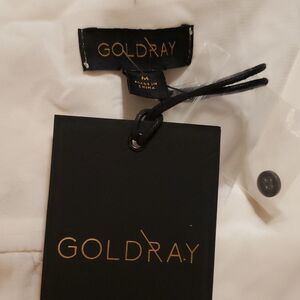 Goldray Long Sleeve Henrietta Mixed Media Surplice Blouse Sz M Cream Dot NEW