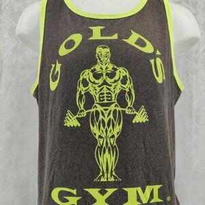 Gold's Gym Tank Top Mens Large Gray Neon Yellow Muscle Graphic Made USA Workout