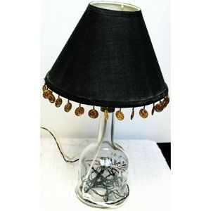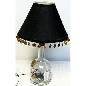 Goldschlager Table Lamp Clear Bottle Black Shade Coin Fringe Handmade Rice Light