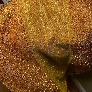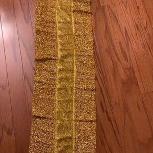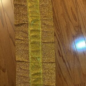 Gold sequined table runner for party/special occasion table decor & led lights. Nine foot by 1’ wide. Includes LED lights that are battery operated. Batteries are not included. New in package and smoke free/pet free home