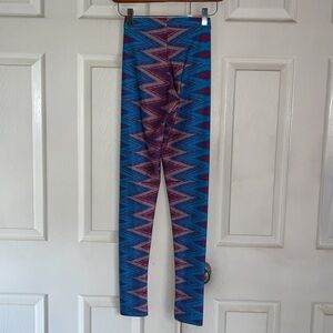 Goldsheep teal and pink zig zag print leggings. Size XS. 10 1/8” waist across top laid flat. 9” rise. 29 1/2” inseam. Excellent pre owned condition