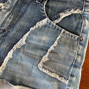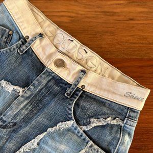 Soft and unique Goldsign Patchwork Denim Shorts. Size 24