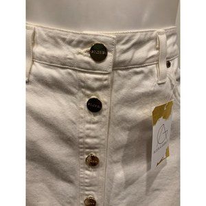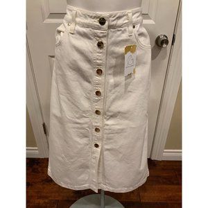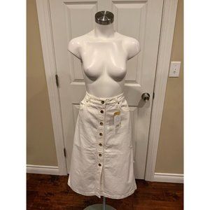 Goldsign White Denim Button Front Midi Skirt, Size 32, NWT!