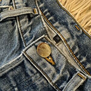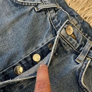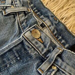 Goldsign button-fly Jeans size 26. Excellent quality luxury denim. Nice light wash. Some discoloration on the button. Button fly closure.