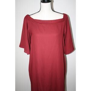 Goldspark Women's Medium Burgundy Dress Pockets Off the Shoulder Flare Sleeves