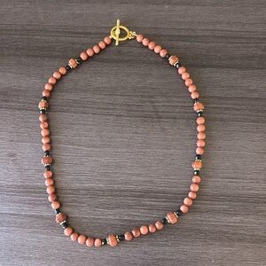 Goldstone Bead and Czech Glass 18β Necklace with Toggle Clasp