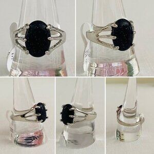 silver ring, goldstone jewelry, celestial ring, oval gemstone, black stone, silver band, healing stone, aventurine glass, glittering gem, artisan ring, unique jewelry, elegant ring