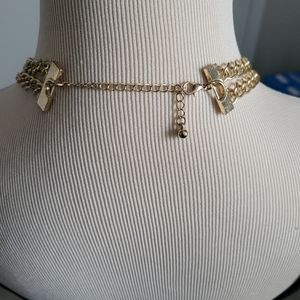 Gold-tone necklace with lion face medallion and rhinestone accents. Luminating green rhinestones make the eyes come to life.