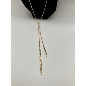 Gold-tone 2-Tier Beaded with 2 Long Dangles Chain Necklace!
