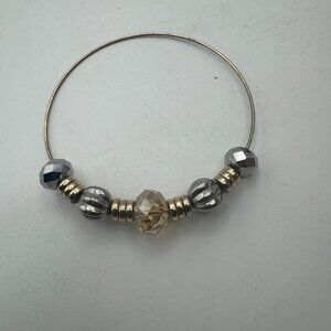 Goldtone Adjustable Beaded Bracelet Faceted Gemstone Accent Metal Crystal