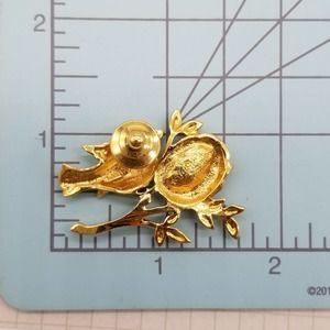 Goldtone Bird & Nest Brooch Pin Faux Pearls