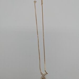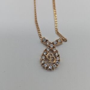 Gold-tone CD (Christian Dior) pendant necklace featuring a teardrop-shaped crystal-encrusted design with “CD” initials at center. Adjustable chain with lobster clasp closure.
