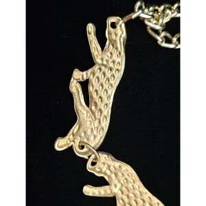 Goldtone necklace with large cheetah or jaguar links and a sun Medallion. May have been converted from a belt. It does not have a clasp. In good vintage condition. 36" long.