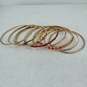 Gold-tone Coral Bangle Bracelet 8 pcs Set Textured Detailing Beaded Accents 2.5"