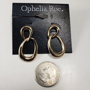 An extravagant design of Polished Gold-tone Double interlocking Hoops Drop Dangle Earrings. Shelf pull item, New with tag