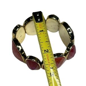 Goldtone Faux Fire Red & Green Dichroic Large Stretch Bracelet