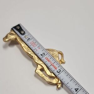 Add a touch of elegance to your home with this stunning gold giraffe figurine. Perfect for any decor style.