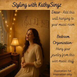 Goldtone Metal Music Note Wall Hanging Decor Treble Clef Jewelry Holder Singers