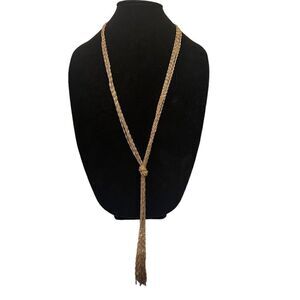 The epitome of extravagance and elegance, this bold gold tone tassel statement necklace is the perfect way to elevate any outfit. It will dress up a black dress exquisitely, with its exquisite gold tassels Transform your look with this statement piece and make a lasting impression.