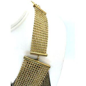 Gold-tone Rhinestone Chainmail Bib Necklace Fringed Chain Statement Boho Chic