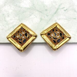 Goldtone Square Vintage Clip-On Earrings measure approx 1.5" wide. Excellent used condition, no scratches or wear noted. #14