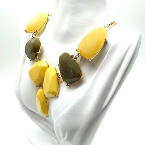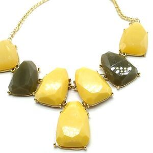 Gold-tone Statement Bib Necklace Mustard Yellow & Green Lobster Clasp