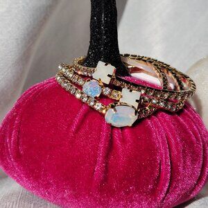 Stunning set of 3 stretchy gold tone crystal bracelets with opal glass accents.