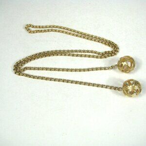 Goldtone Vintage Chain Necklace 44 inch Openwork Orb Pendants Sautoir